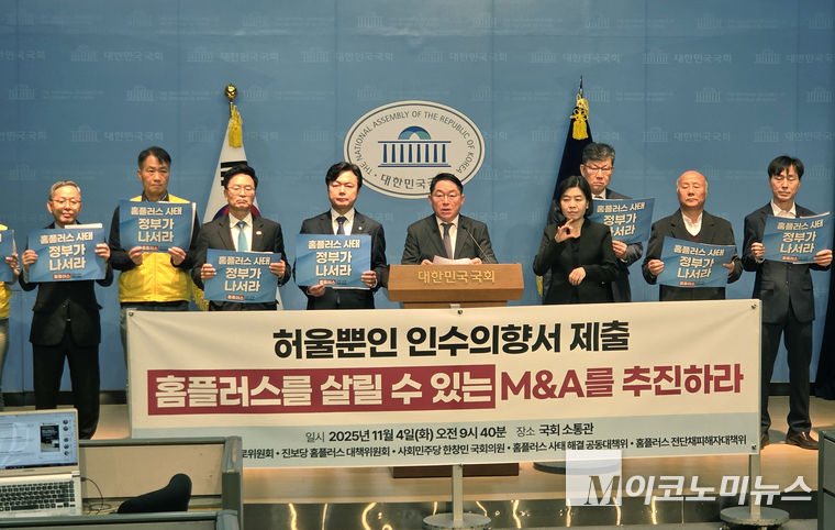 더불어민주당 을지로위원회(위원장 민병덕)는 4일 국회 소통관에서 ‘허울뿐인 인수의향서 제출, 홈플러스를 살릴 수 있는 M&A를 추진하라’ 기자회견을 열었다.