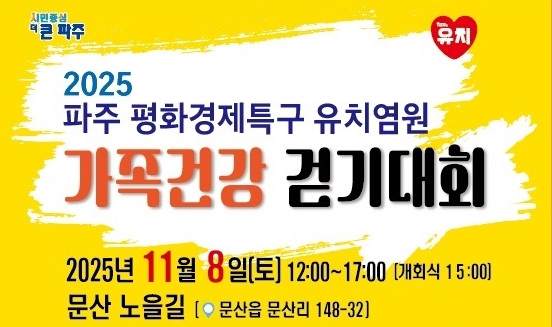 문산천 노을길을 따라 약 4.5km의 구간을 걷는 이 행사에는 ‘평화경제특구’ 유치에 관심이 있는 파주시민이라면 누구나 무료로 참여할 수 있다. 이날 행사장에서는 걷기대회 외에도 지역 예술인들의 특별공연 등 다채로운 볼거리가 열린다.