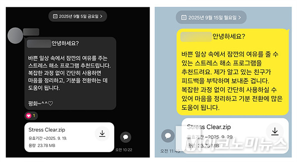 올해 9월 5일 해커가 국내 탈북 청소년 전문 심리 상담사의 스마트폰을 초기화하고 탈취한 카카오톡 계정을 통해 '스트레스 해소 프로그램'으로 위장한 악성 파일을 탈북민 청소년 등 지인들에게 다수 전송했다.