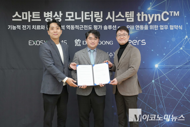 대웅제약은 병원 대상 솔루션 도입, 마케팅 활동, 사업설명회 운영, 신규 병원 발굴 등 영업 전반을 맡는다. 씨어스테크놀로지는 AI 기반 병상 모니터링 시스템 ‘씽크’와 엑소시스템즈의 근육 신호 분석 솔루션 ‘엑소필(exoPill)’을 연동한 통합 플랫폼 개발을 담당한다. 엑소시스템즈는 엑소필 기기의 기술 안정성 확보와 제품화·상용화를 추진한다.