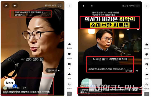 딥페이크의 대표적 부작용은 허위·과장 광고를 들 수 있다. 유명인이나 의사를 사칭해 의약품을 추천하는 영상으로 소비자 피해 우려가 커지고 있다. 광고 속에서 의사 이름이나 병원명, 면허번호가 없거나 ‘OO대 출신’, ‘OO과 전문의’ 등 모호한 표현만 있다면 가짜 의사일 가능성이 높다.