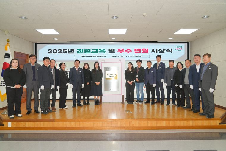 또한 이날 행사에서는 행정안전부 주관 ‘2025년 국민행복민원실 재인증’을 기념하는 현판 제막식도 함께 열려 그 의미를 더했다. 양평군은 올해 공간 · 서비스 · 체험 · 만족도 등 전반적인 민원서비스 수준에서 우수한 평가를 받아 재인증 기관으로 선정됐다.