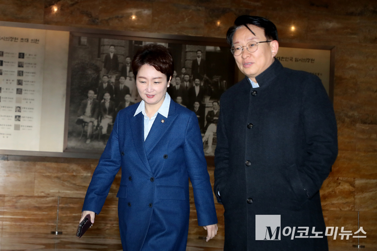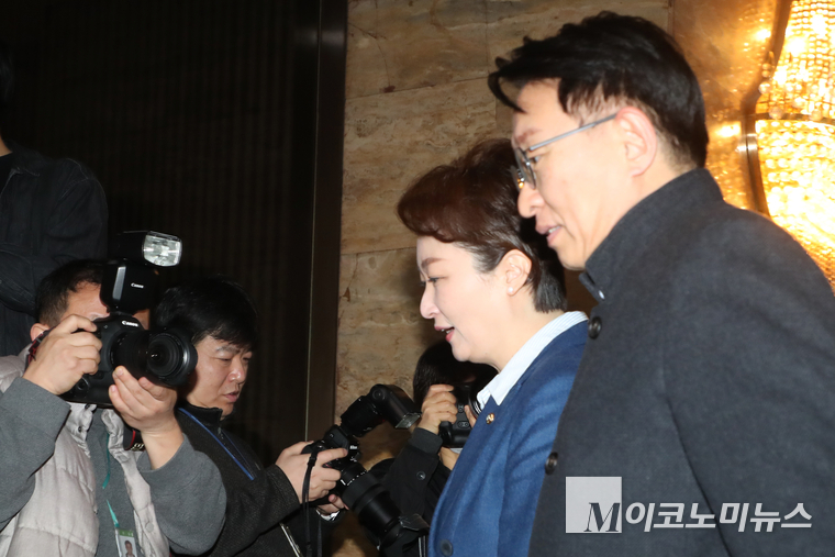 「M포토」 비공개 의총 참석하는 이언주·권칠승