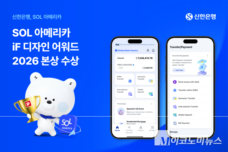 신한은행(은행장 정상혁)은 미국 디지털 금융 플랫폼 ‘Shinhan SOL America’가 ‘iF 디자인 어워드 2026’에서 본상을 수상했다고 5일 밝혔다.