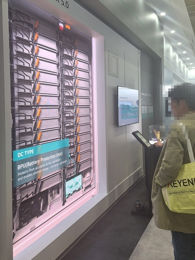 LG에너지솔루션 부스에서는 대형 디지털 스크린을 활용한 기술 소개가 관람객들의 시선을 끌었다. 이 회사는 AI 데이터센터와 전력 인프라 시장을 핵심 타깃으로 제시하며 관련 솔루션을 공개했다.