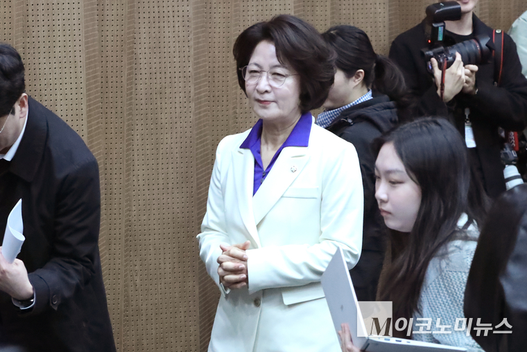 「M포토」 기자회견 후 이동하는 추미애 경기지사 후보