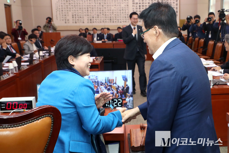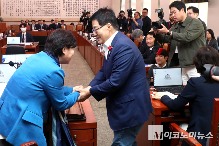 「M포토」 악수하는 서영교-박지원