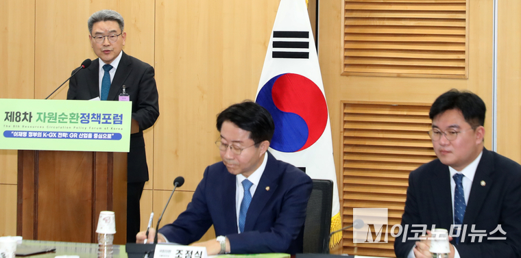더불어민주당 장철민·박홍배·정준호 의원 주최로 ‘제8차 자원순환정책포럼’이 8일 국회에서 개최됐다. 민주당 정준호 의원의 개회사와 조정식 의원의 축사에 이어 민경보 한국자원순환산업진흥협회 회장 환영사로 포럼이 시작됐다.