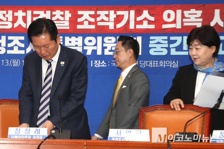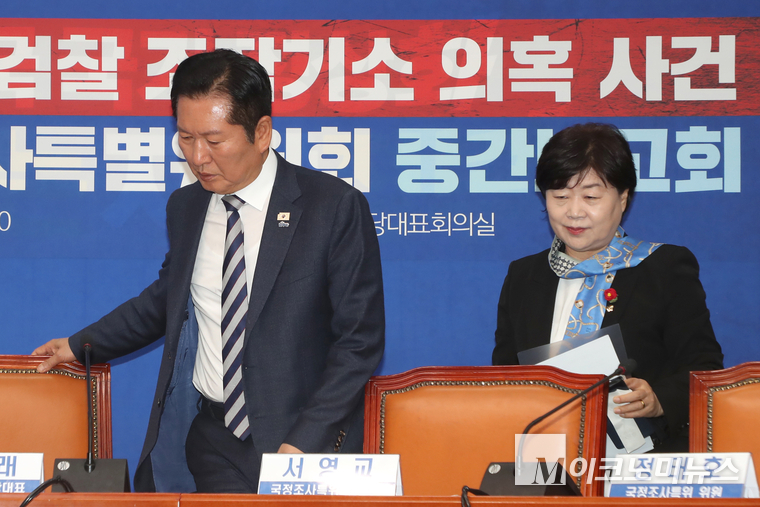 「M포토」 ‘조작기소 국조특위’ 보고회 참석하는 정청래-서영교