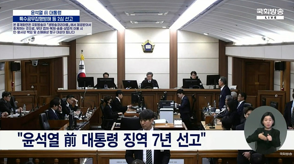 윤석열 전 대통령이 고위공직자범죄수사처(공수처)의 체포영장 집행을 방해한 혐의 등으로 진행된 항소심에서 1심보다 무거운 징역 7년을 선고받았다. 29일 오후 진행된 서울고등법원 형사1부(재판장 윤성식)는 특수공무집행방해, 직권남용 권리행사방해 등 다수의 혐의를 유죄로 인정하며 1심의 징역 5년보다 형량을 2년 늘렸다. 이는 특검이 구형한 징역 10년보다는 낮지만, 항소심에서 유죄 범위가 확대해석된 첫 판단이다.
