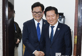 「M포토」 정청래-송영길, 면담 후 밝은 표정