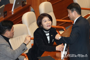 「M포토」 설 앞두고 한복 입고 본회의 참석한 범여권 의원들