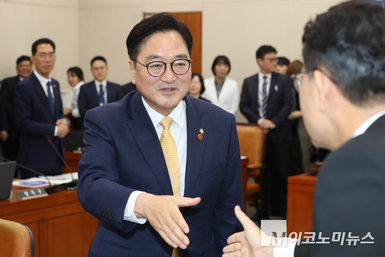 「M포토」 기후에너지환경부 국감장 찾은 우원식 국회의장