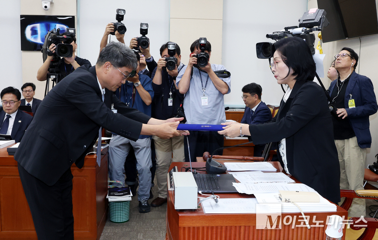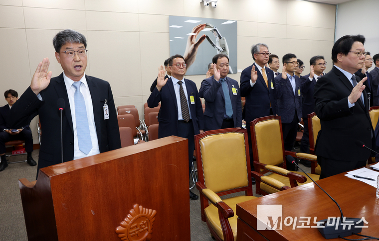 「M포토」 증인 선서하는 반상권 방송미디어통신위원회 위원장 직무대리