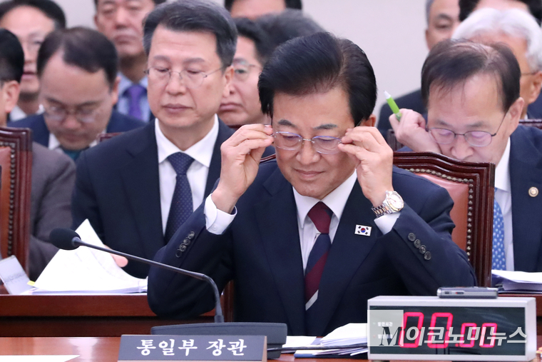 「M포토」 안경 고쳐 쓰는 정동영 통일부 장관