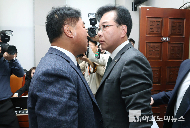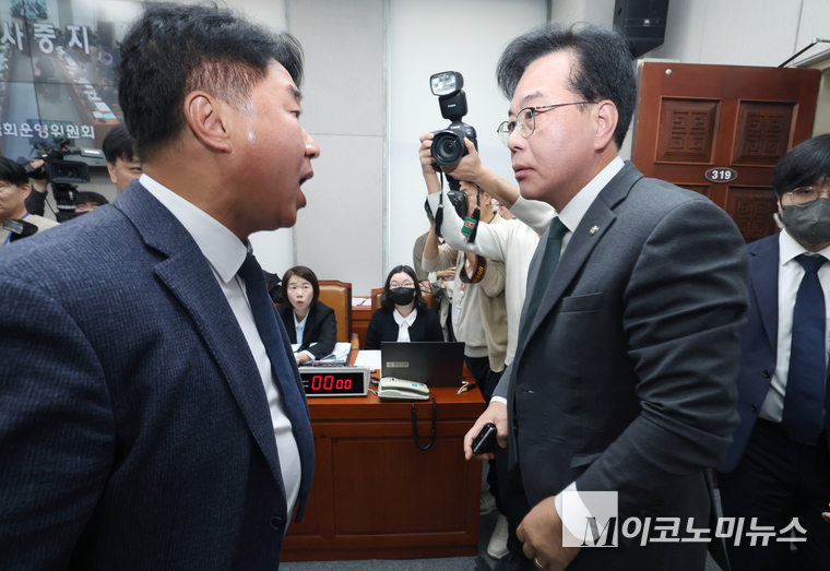 「M포토」 국회 운영위, 정회...송언석·이기헌 ‘배치기’