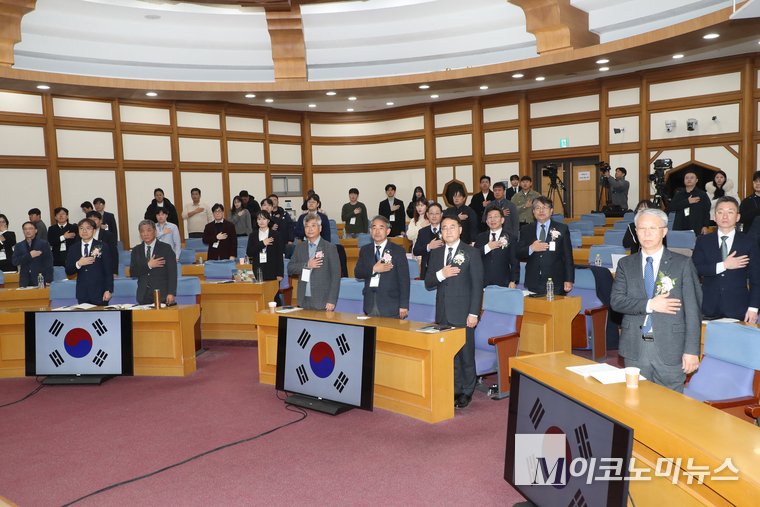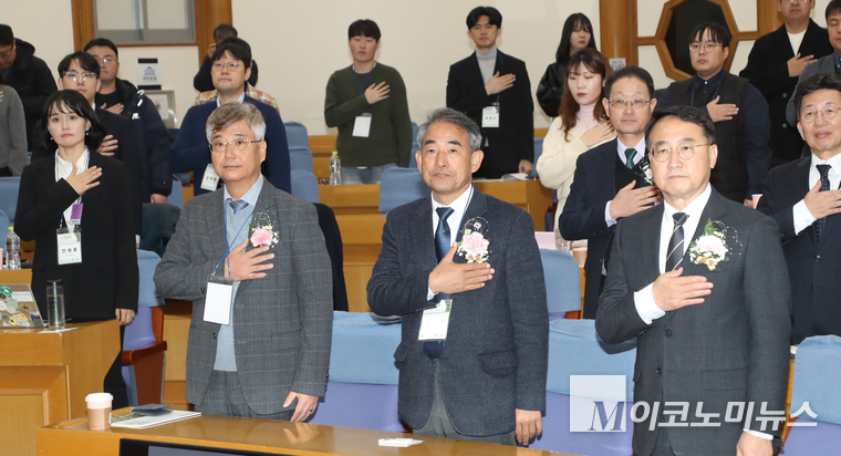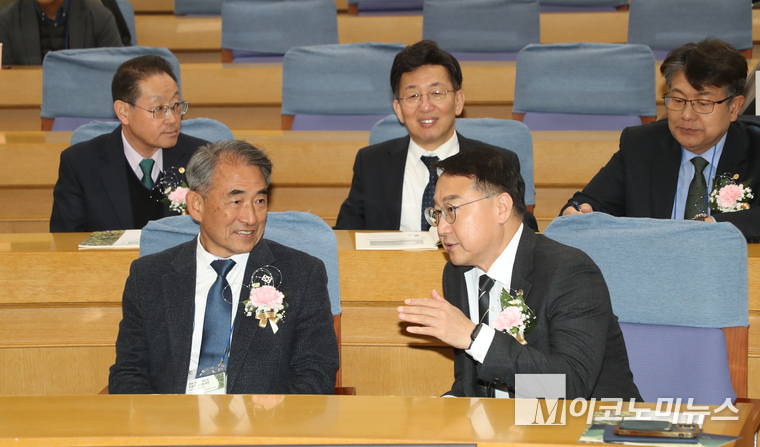 「M포토」 토론회에서 대화 나누는 윤준병 의원과 김인호 산림청장