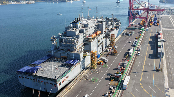 한화오션은 올해 5월 지역 조선소 및 정비업체 15곳과 ‘함정 MRO 클러스터 협의체’를 구축했다. 4만3700여t급(전장 210m, 선폭 32m) 미 해군 군수지원함 월리 쉬라 호는 이달 5일 경남 창원시 마산합포구 마산가포신항에 입항했다. 마산가포신항은 수심 등 부두 여건이 MRO 작업에 적한 것으로 알려졌다.