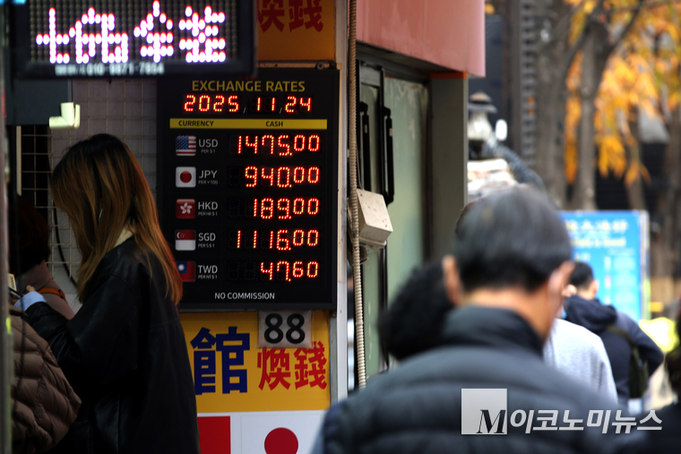 「M포토」 원 달러 환율, 1475원...사설 환전소의 환율 현황판