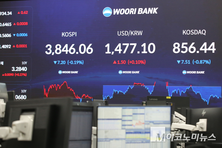 「M포토」 원 달러 환율 1,447.1원, 코스피 3,846.06으로 마감