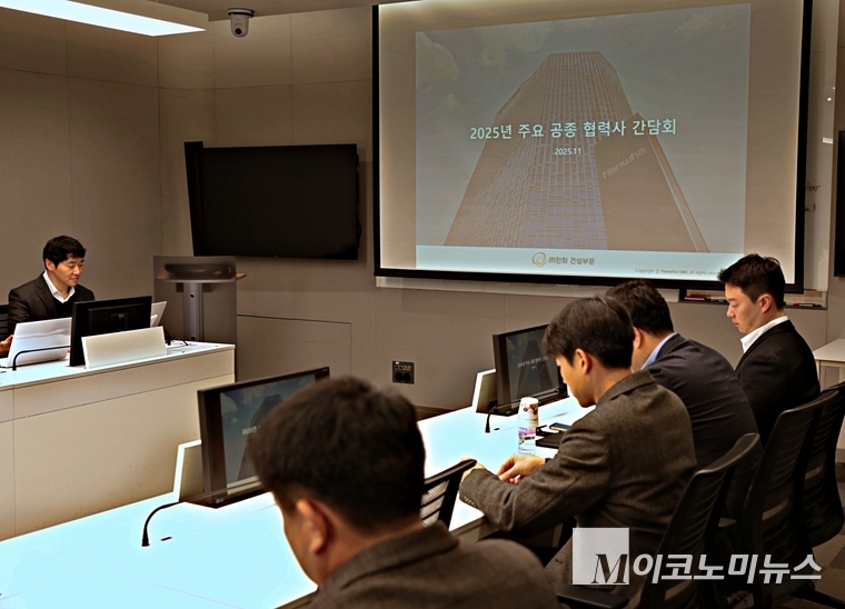 ㈜한화 건설부문(이하 한화건설)은 지난 25일 서울특별시 장교동 한화빌딩 회의실에서 진행한 철근콘크리트·철골 공종 협력사 간담회를 시작으로 매월 ‘공종별 협력사 간담회’를 열어 협력사와의 상생문화 선도에 나선다고 26일 밝혔다.