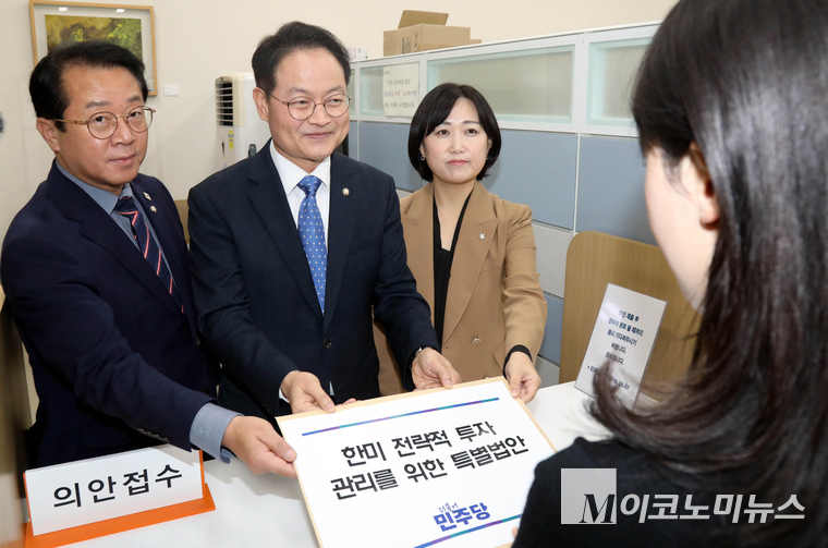 더불어민주당은 26일 한미 관세 합의에 따른 ‘전략적 투자 관리를 위한 특별법’ 제정안을 발의했다. 김병기 민주당 원내대표가 대표 발의하고 허영 민주당 원내정책수석부대표가 국회 의안과에 특별법을 제출했다.