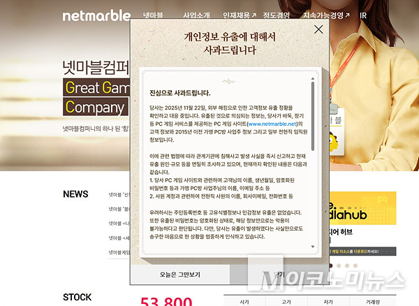 국내 대표 게임사 중 하나인 넷마블에서 22일 해킹 공격을 받아 고객 일부 개인정보와 PC방 가맹점주의 일부 개인정보, 일부 전현직 사원의 이름 및 전화번호 등이 유출됐다. 이번 해킹 피해는 PC 게임 사이트에서 발생해 온라인 게임보다는 PC 게임 사이트 이용 고객이 더 컸다.