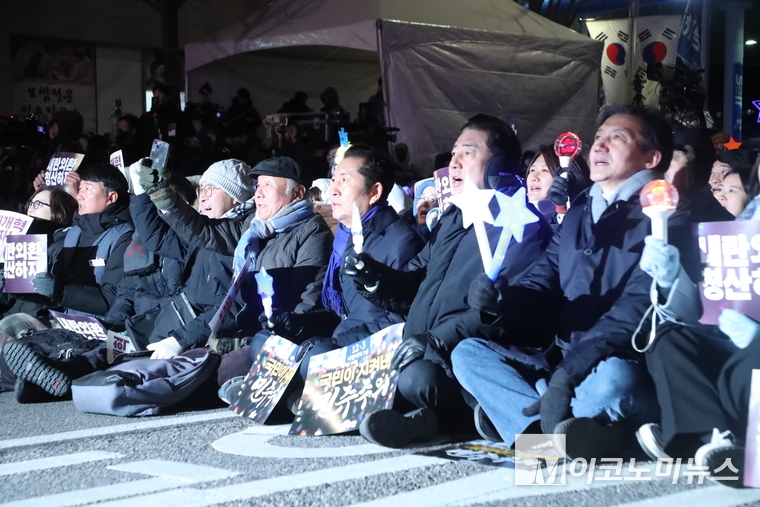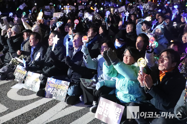 「M포토」 비상계엄 1년, 응원봉 다시 꺼내든 각 당대표