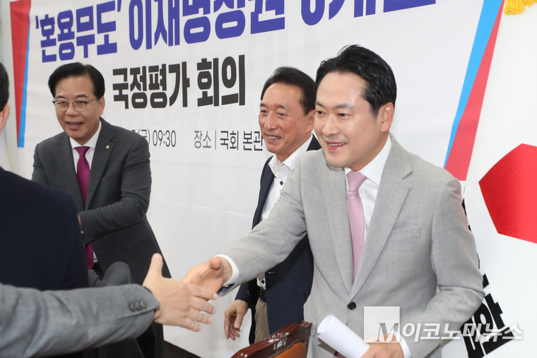 「M포토」 ‘이재명 정권 6개월 국정평가’ 회의 참석하는 장동혁