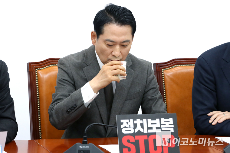 「M포토」 최고위서 물 마시는 장동혁 국민의힘 대표
