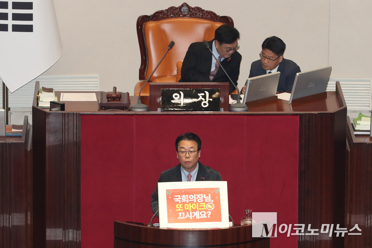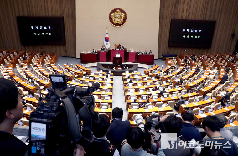 「M포토」 국민의힘 무제한토론 돌입...첫 주자로 나선 곽규택