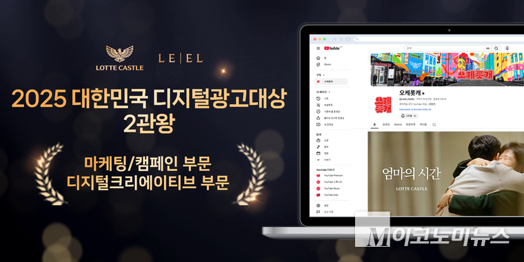 롯데건설은 지난 11일 디지털 광고 어워즈인 ‘대한민국 디지털 광고 대상’에서 유튜브 채널 ‘오케롯캐’와 콘텐츠 ’엄마의 시간’으로 마케팅·캠페인부문과 디지털크리에이티브부문 우수상을 수상했다고 12일 밝혔다.