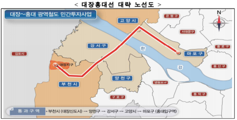 대장~홍대 광역철도는 부천 대장신도시와 서울 지하철 2호선 홍대입구역을 연결하는 총 연장 20km 규모의 신규 광역철도 사업이다. 2020년 12월 현대건설 컨소시엄이 민간투자사업을 제안하면서 본격 추진됐다.