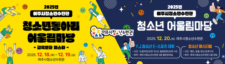 ‘2025 청소년어울림마당’이 오는 18일~20일까지 개최된다. 여주시청청소년수련관에서 열리는 이 행사는 '청소년 동아리 어울림마당'과 '청소년 어울림마당' 두 주제로 나눠 열린다.