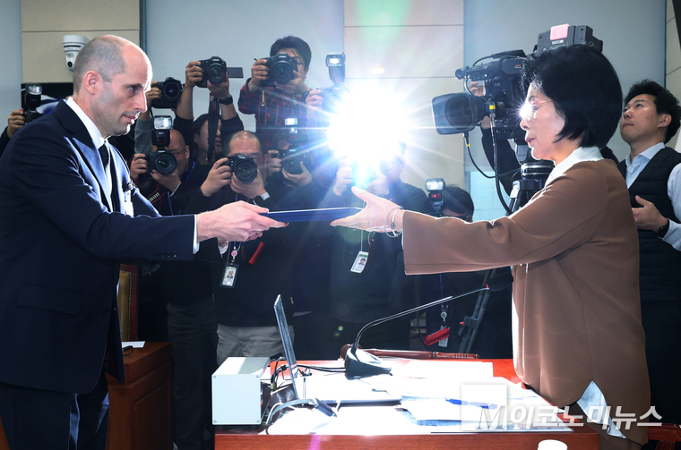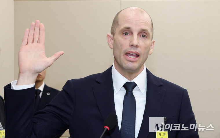 「M포토」 ‘쿠팡 청문회’ 출석해 증인 선서하는 해롤드 로저스 쿠팡 대표이사