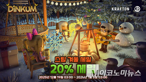 크래프톤(Krafton)의 생존 생활 시뮬레이션 게임 ‘딩컴(Dinkum)’이 스팀(Steam) 겨울 할인 프로모션에 참여한다. 이번 프로모션은 스팀이 매년 진행하는 대규모 시즌 할인 행사로, 연말을 맞아 글로벌 이용자들이 딩컴을 보다 합리적인 가격에 경험할 기회를 제공한다.