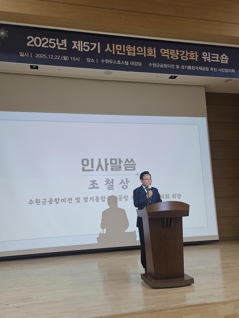 지난 22일 수원군공항이전 및 경기통합국제공항 추진 시민협의회(이하 ‘시민협의회’)는 "지난 22일, 수원 유스호스텔 대강당에서 ‘제5기 시민협의회 워크숍’을 추진 했다"고 23일 밝혔다.