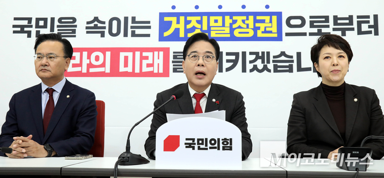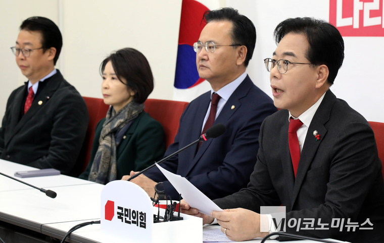 「M포토」 기자간담회에서 발언하는 송언석 원내대표