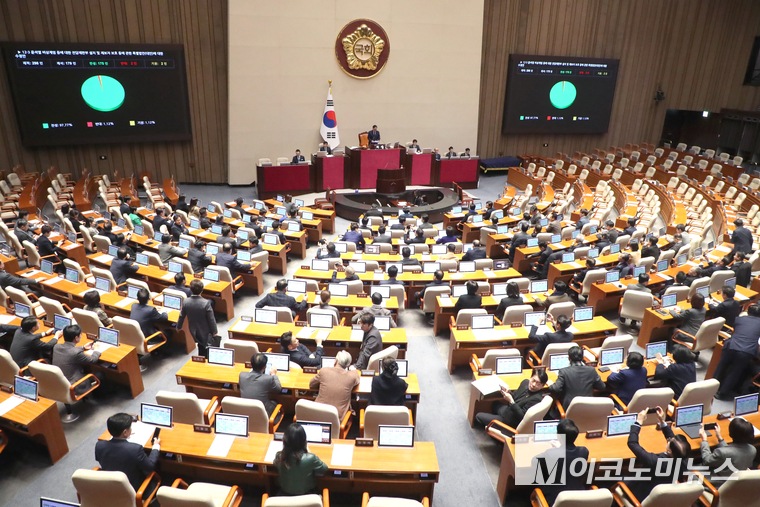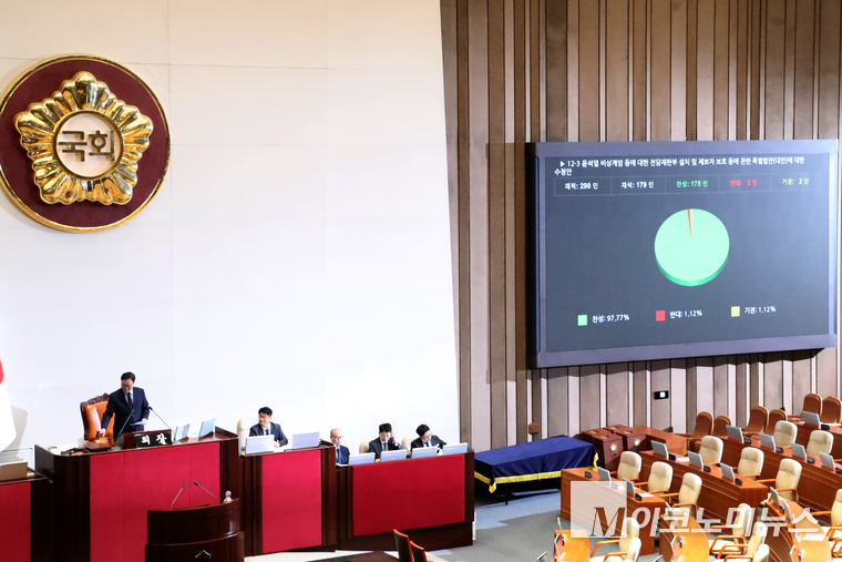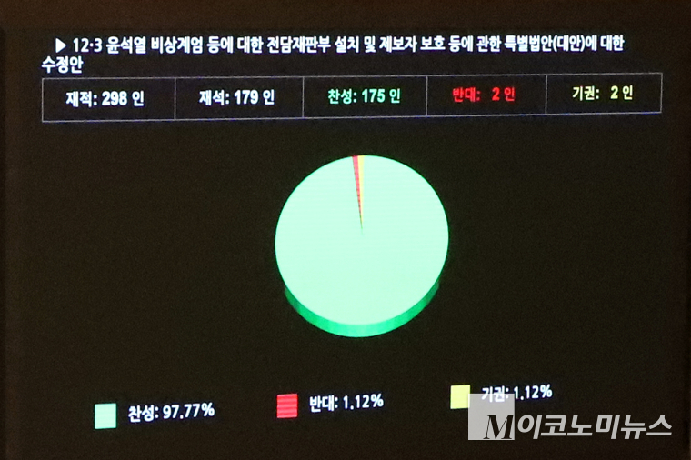 23일 국회에서 열린 제430회국회(임시회) 제2차 본회의에서 12·3 윤석열 비상계엄 등에 대한 전담재판부 설치 및 제보자 보호 등에 관한 특별법안(대안) 수정안이 찬성 175표, 반대 2표, 기권 2표로 통과됐다.