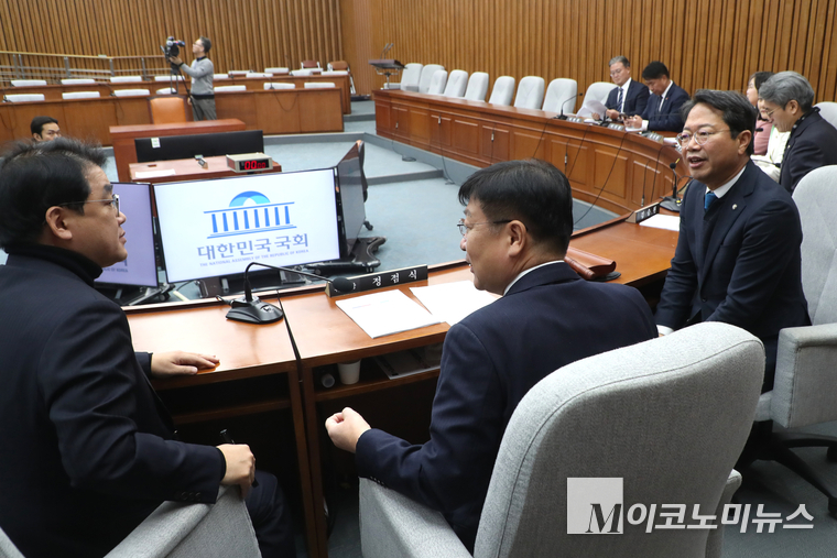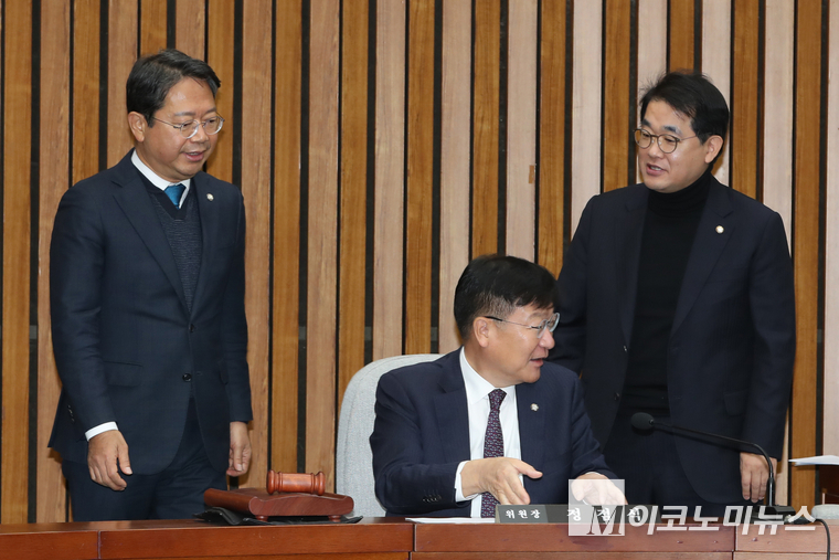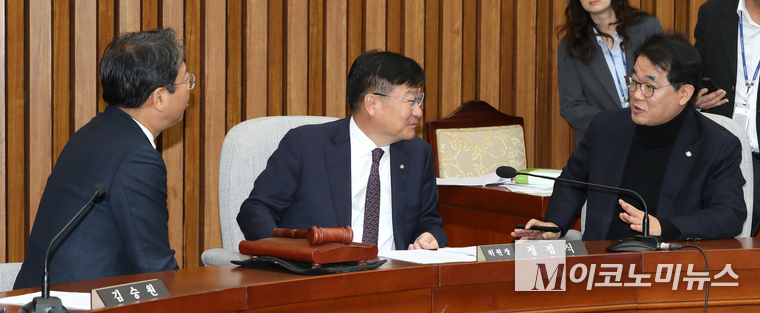 「M포토」 여야 간사와 대화하는 정점식 인청특위 위원장