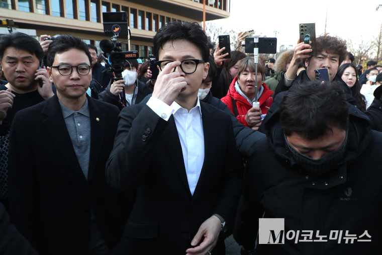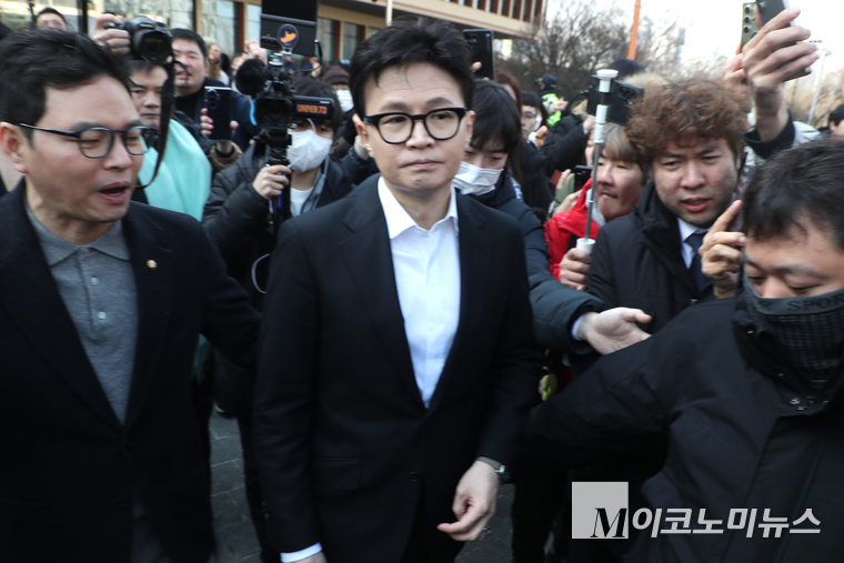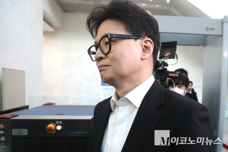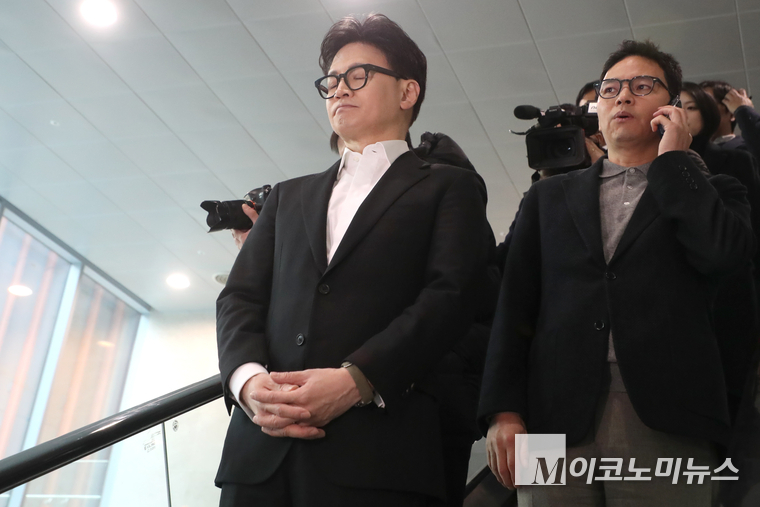 「M포토」 ‘제명’ 입장 밝히고 국회 소통관 나서는 한동훈