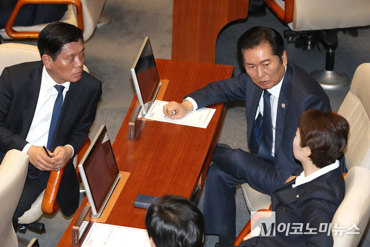 「M포토」 의원들과 대화하는 정청래 더불어민주당 대표