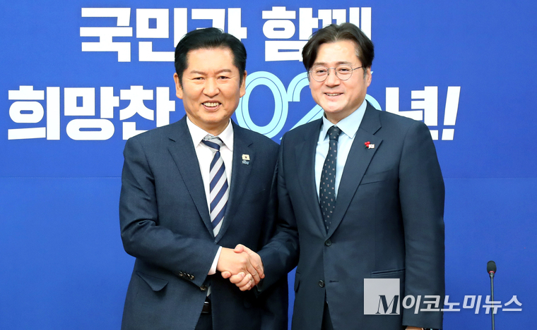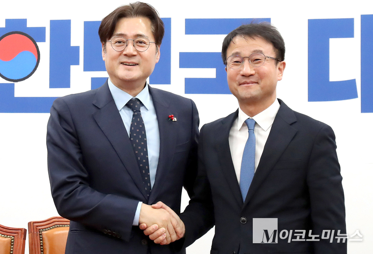「M포토」 홍익표 정무수석, 차례로 정청래·한병도 예방