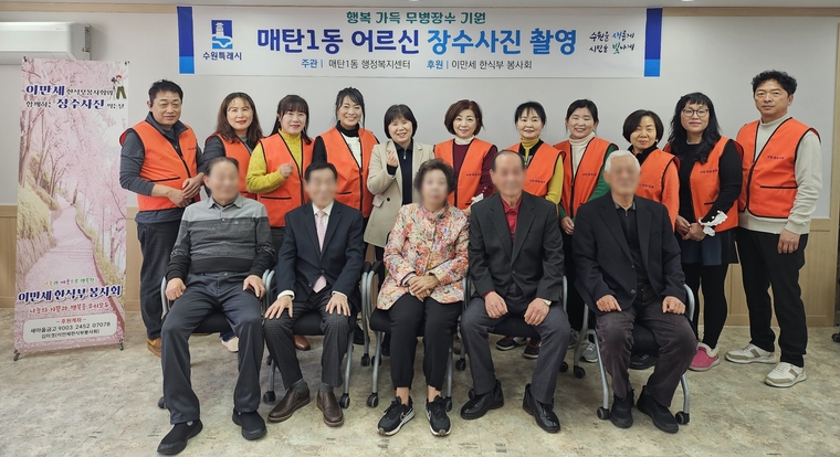 매탄1동 어르신 장수 사진 촬영은 ‘이만세 한식부 봉사회’가 지역 어르신들의 소중한 순간을 아름답게 담아 간직할 수 있도록 재능기부로 진행했다.