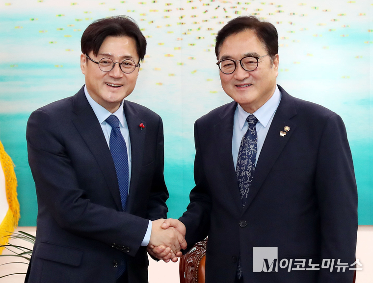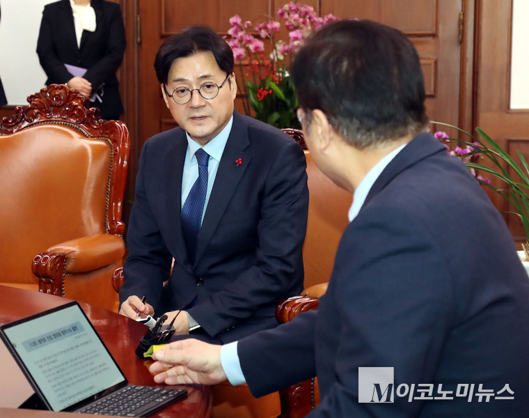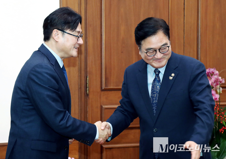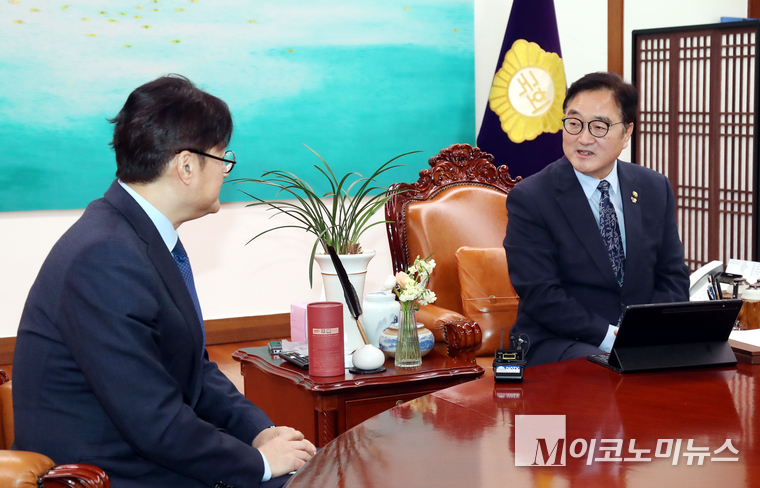 「M포토」 우원식 국회의장 예방한 홍익표 정무수석