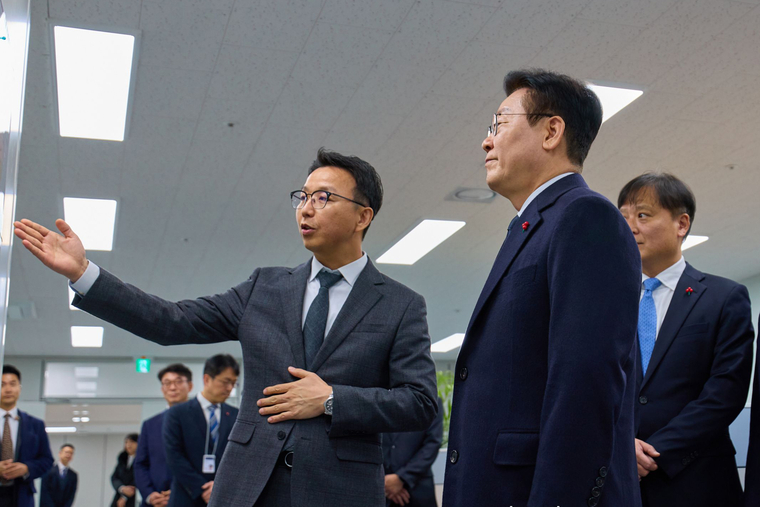 이재명 대통령이 26일 정부서울청사 창성동 별관에 마련된 초국가범죄 특별대응 태스크포스(TF) 사무실을 찾아 직원들을 격려하고 해외를 거점으로 발생하는 스캠 범죄에 적극 대응할 것을 지시했다.