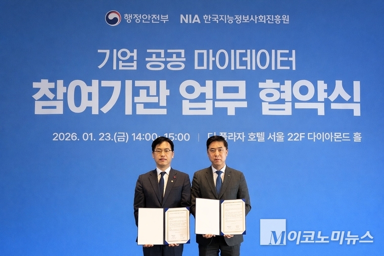 신용보증기금이 행정안전부와 함께 서울 플라자호텔에서 기업 공공 마이데이터 활성화를 위한 업무협약을 체결했다고 26일 밝혔다.