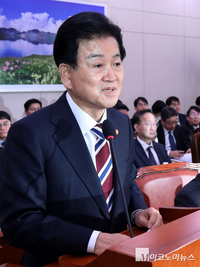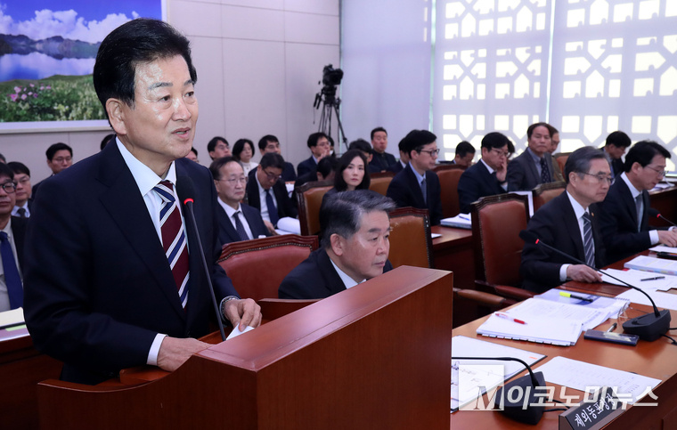 「M포토」 외통위서 인사말 하는 정동영 장관