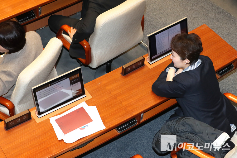 「M포토」 정청래 대표 자리에 앉은 이언주 최고