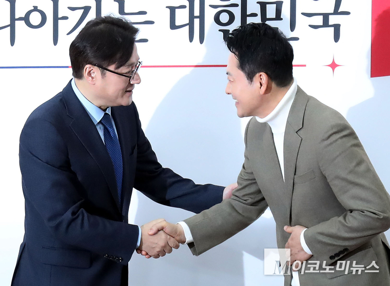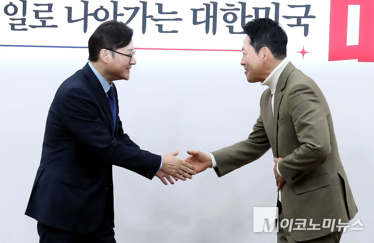 「M포토」 악수하는 장동혁 대표와 홍익표 정무수석